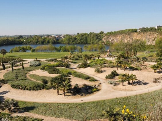 Collection de plantes méditerranéennes. Plan d'eau. Belvédère. Présence d'animaux. Guinguette en été.